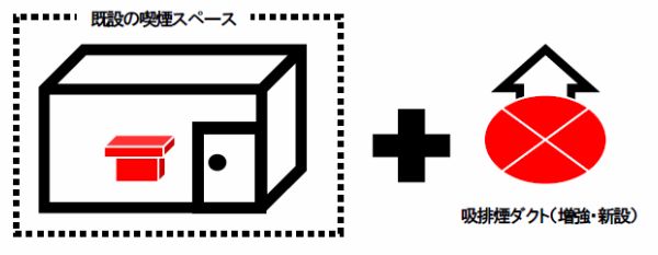 既設のパーティションなどで囲った吸排気設備付喫煙スペースに機器追加
