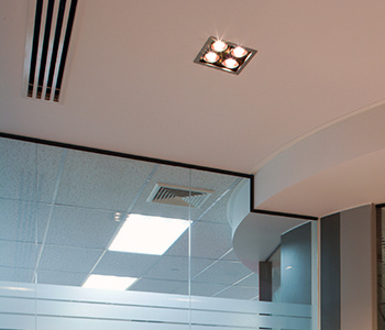 間仕切りによる蛍光灯の増設をはじめ、エントランス、廊下、会議室など、TPOに応じた照明をご提案し、よりよいオフィスの雰囲気づくりをサポートいたします。